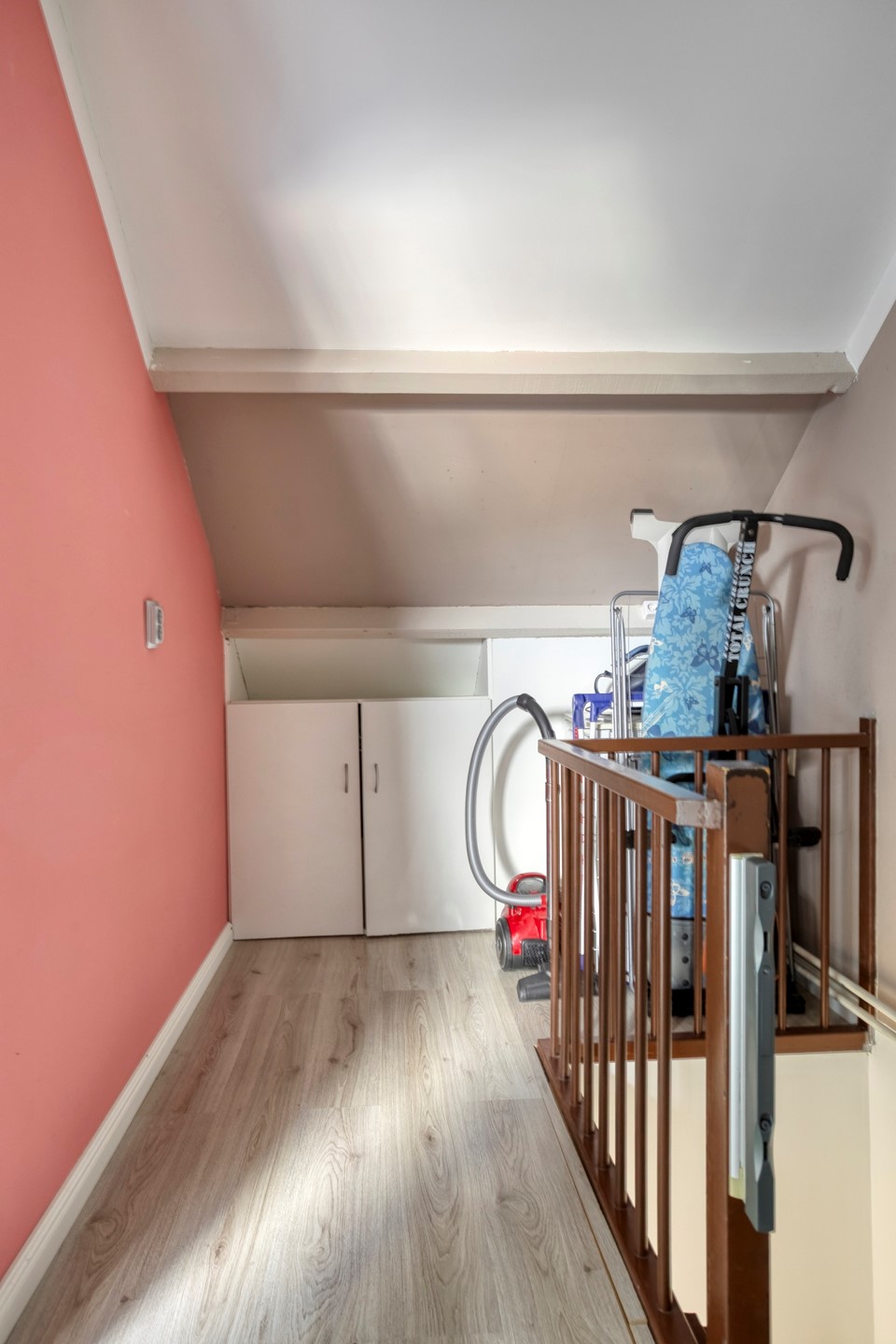 Vanaf de overloop heb je toegang tot drie slaapkamers, badkamer en via de vaste trap is de tweede verdieping te bereiken.