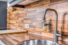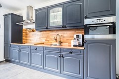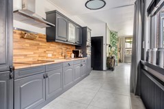 Aansluitend bevindt zich de open keuken, voorzien van diverse inbouwapparatuur zoals een inductiekookplaat, afzuigschouw, vaatwasser, koelkast en combi-magnetron. Een fijne plek om uitgebreid te koken én in contact te blijven met de woonkamer.