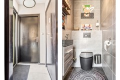 Vanuit het portaal bereikt u niet alleen de tuin, maar ook het toilet en de moderne badkamer. De Badkamer is uitgerust met een stijlvol dubbel badkamermeubel en inloopdouche.
