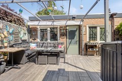 De modern aangelegde achtertuin is een fijne plek om te ontspannen, met een onderhoudsvriendelijke sierbestrating en volop ruimte voor een loungehoek of eettafel. Dankzij de beschutte ligging geniet je hier in alle rust van zon en privacy.