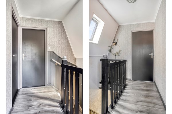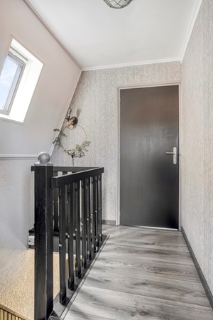 Overloop met toegang tot drie comfortabele slaapkamers – ideaal voor een gezin, thuiswerkplek of hobbyruimte.