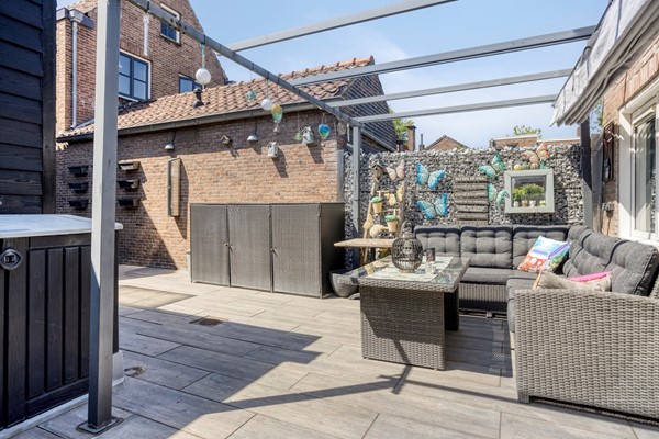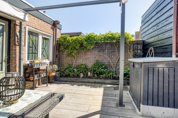 De modern aangelegde achtertuin is een fijne plek om te ontspannen, met een onderhoudsvriendelijke sierbestrating en volop ruimte voor een loungehoek of eettafel. Dankzij de beschutte ligging geniet je hier in alle rust van zon en privacy.