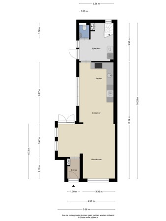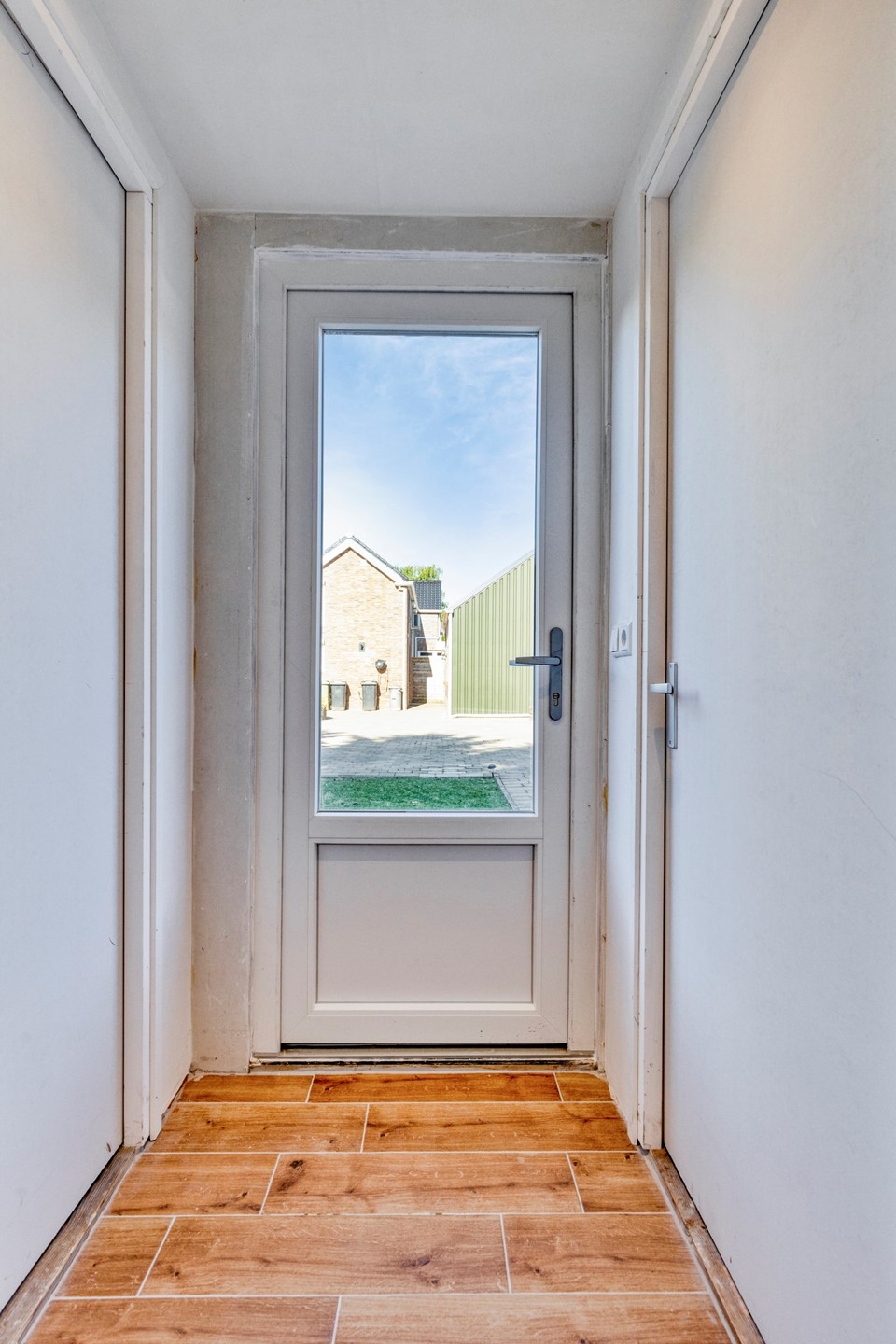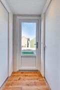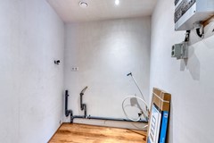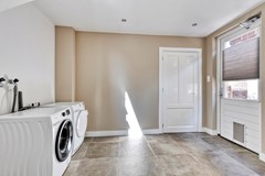 Aansluitend vindt u de bijkeuken, waar zich de aansluitingen voor wasapparatuur bevinden. Ook biedt deze ruimte toegang tot: