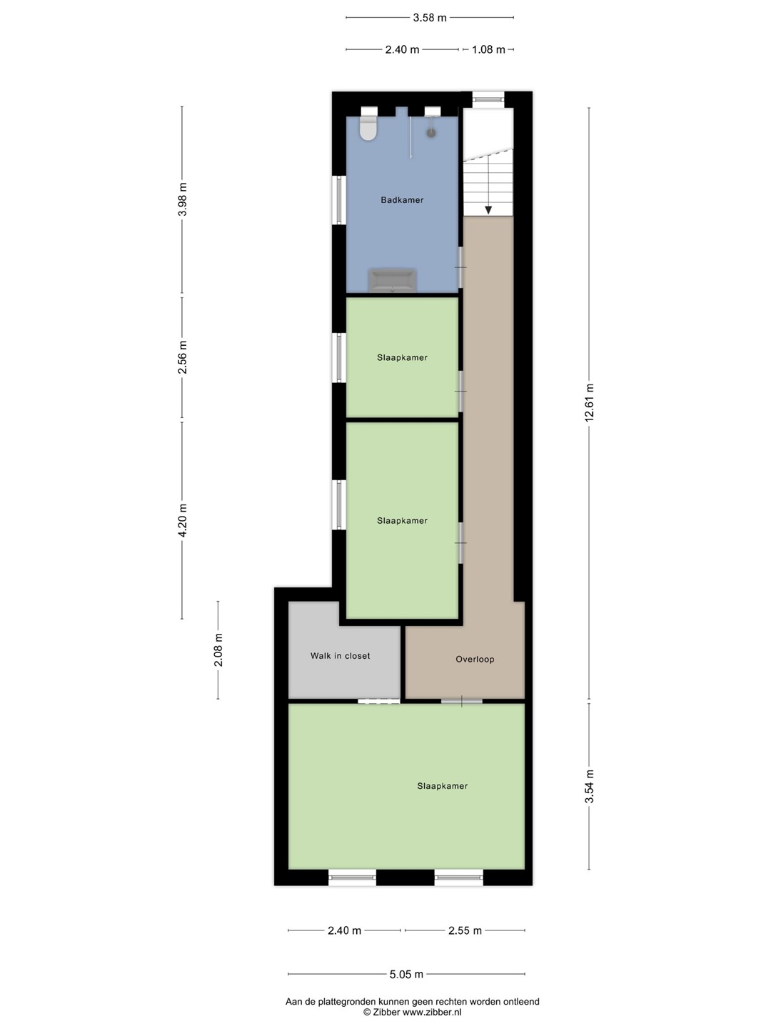Aan de achterzijde bevinden zich nog twee slaapkamers, van ca. 4.22 x 2.38 m en 2.58 x 2.38 m. De grootste slaapkamer is ook voorzien van airco.