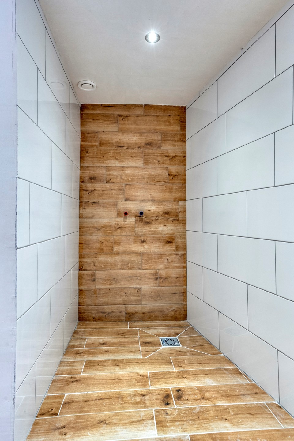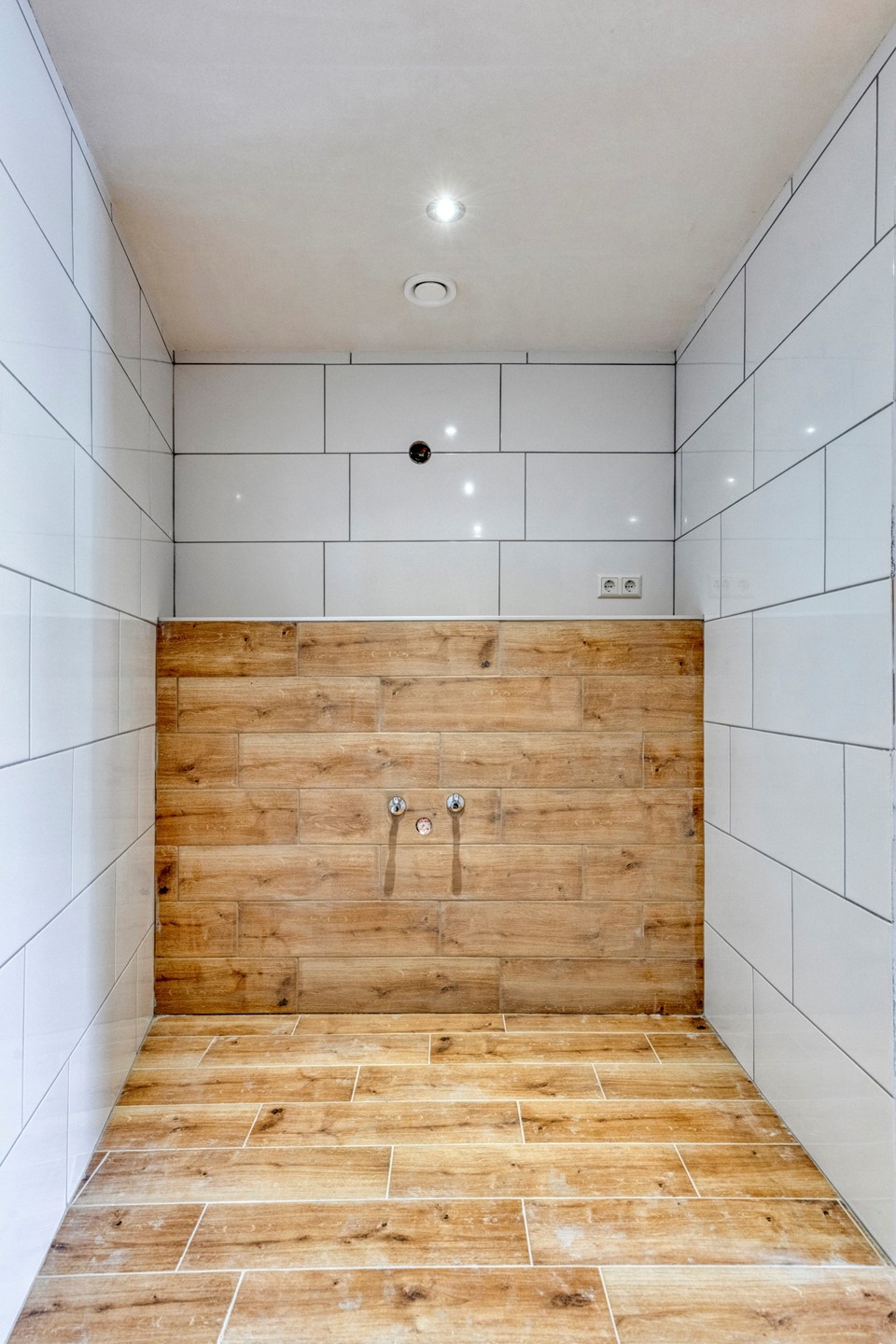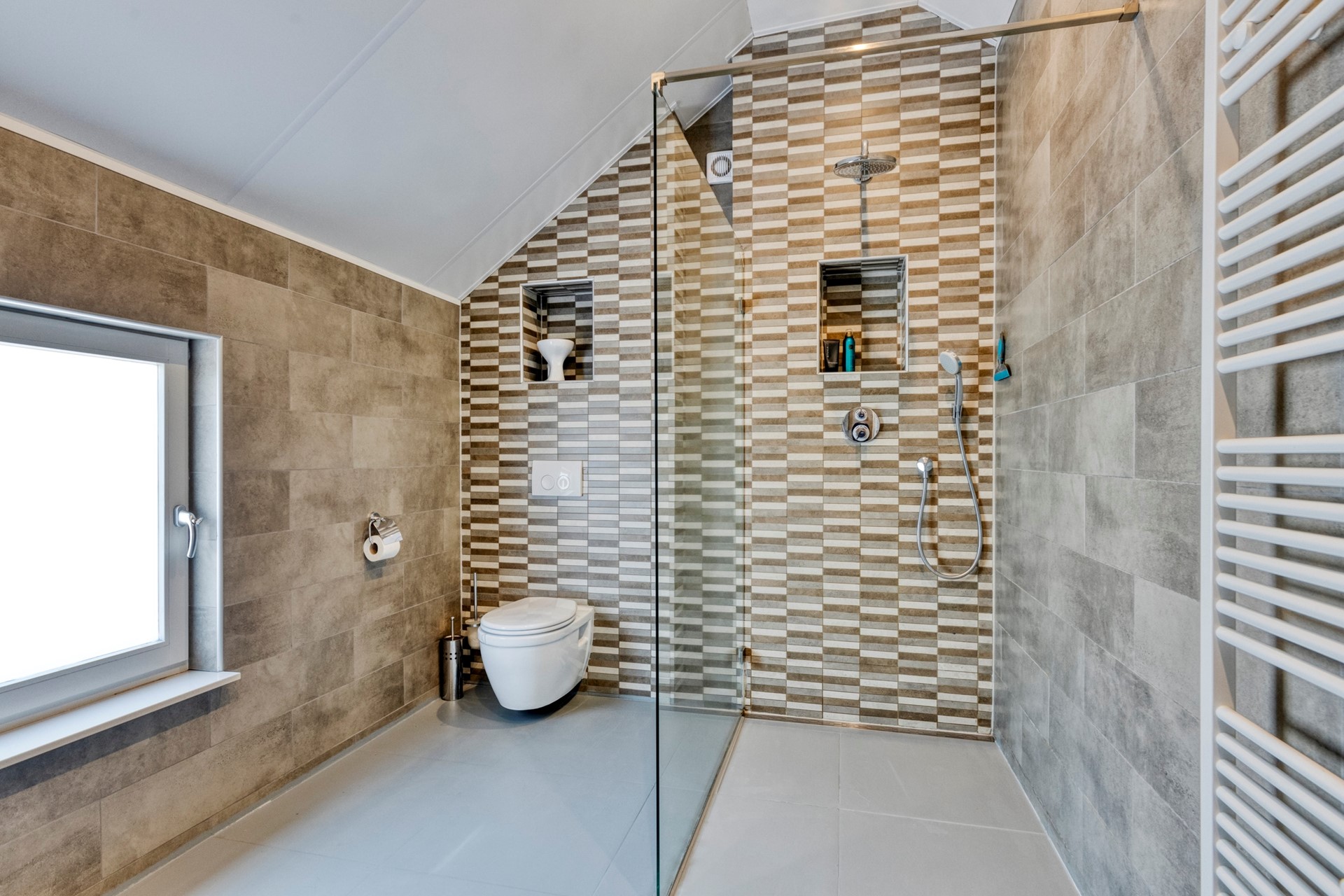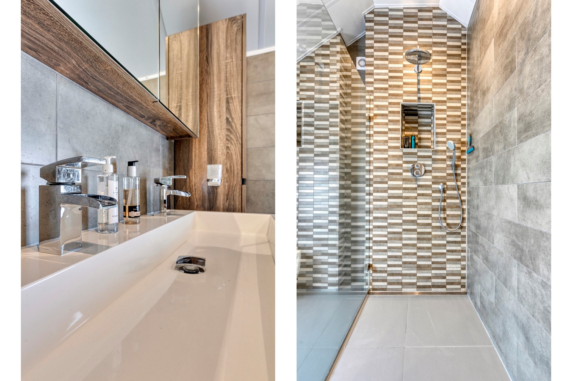 + Een inloopdouche met zowel regen- als handdouche en een thermostaatkraan