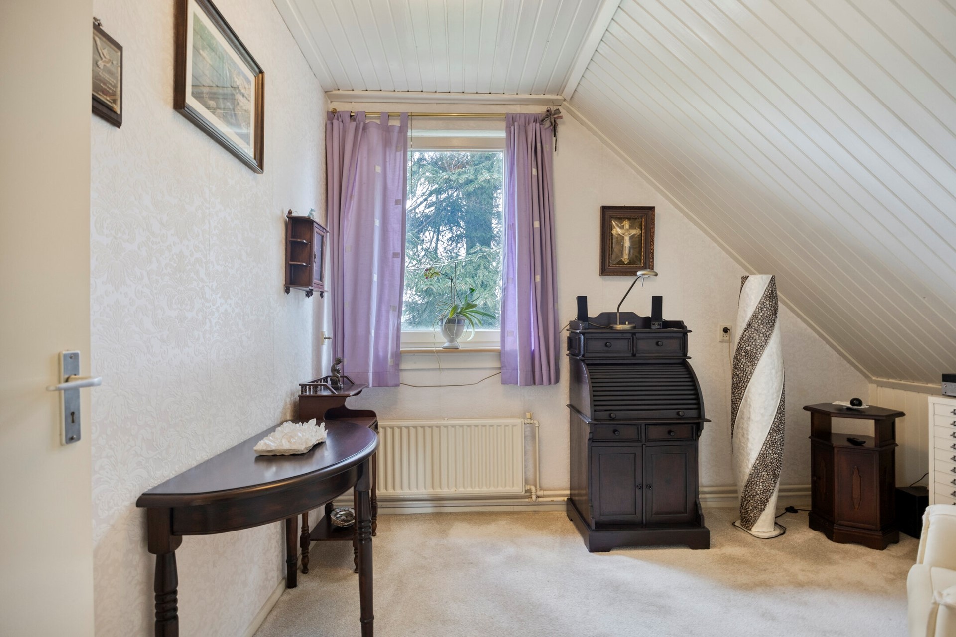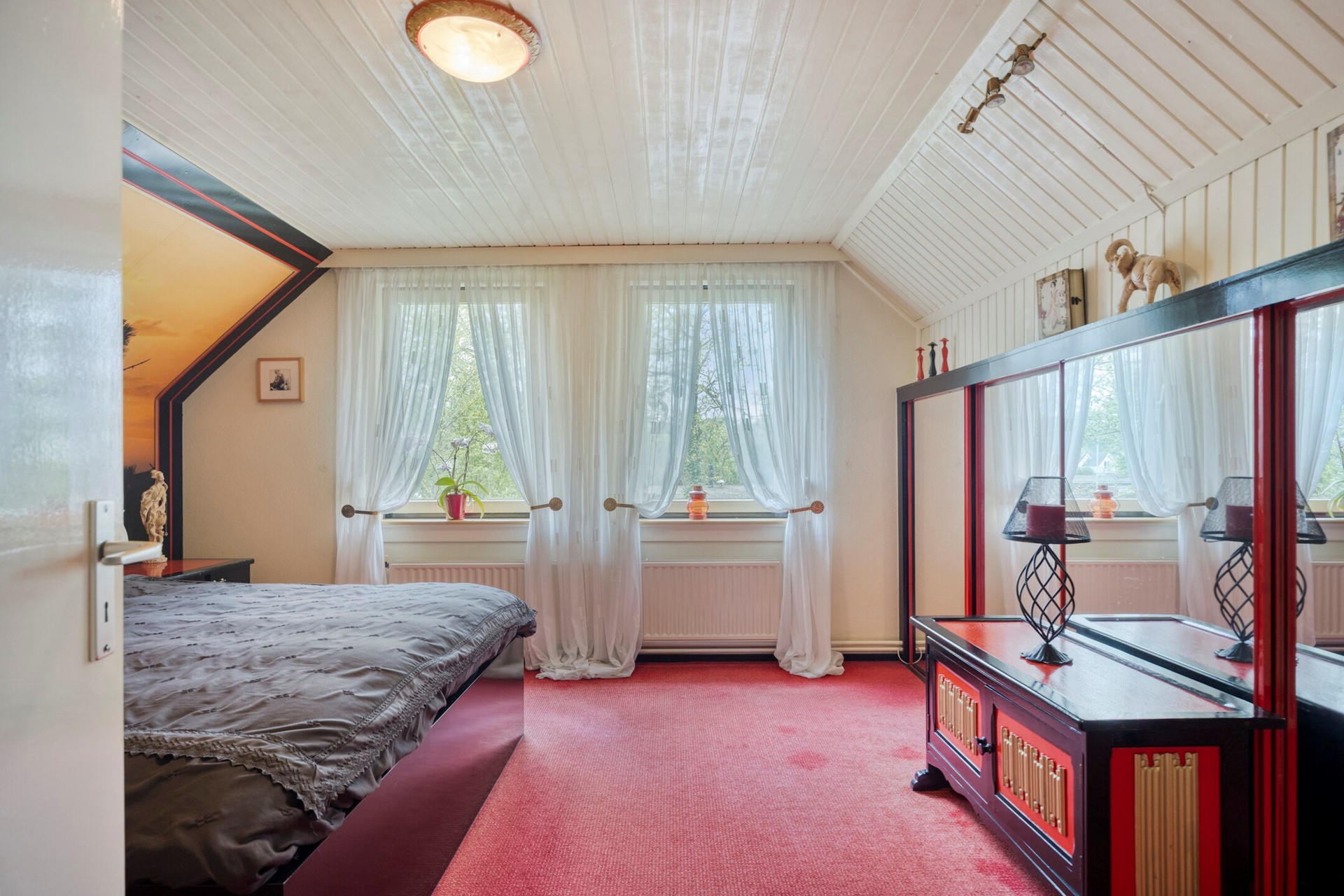 De slaapkamers genieten van een prettige lichtinval dankzij de grote raampartijen. De ramen zijn uitgevoerd met een draai-kiepfunctie. De schuine wanden geven de kamers een speels karakter, terwijl ze toch praktisch in te delen blijven.